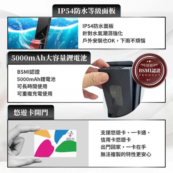C級鎖芯、兒童鎖、辦公/私人模式、BSMI 鋰電安全認證、AWS 雲端加密、NCC:CCAJ24LPABB0T0、電子反鎖 |