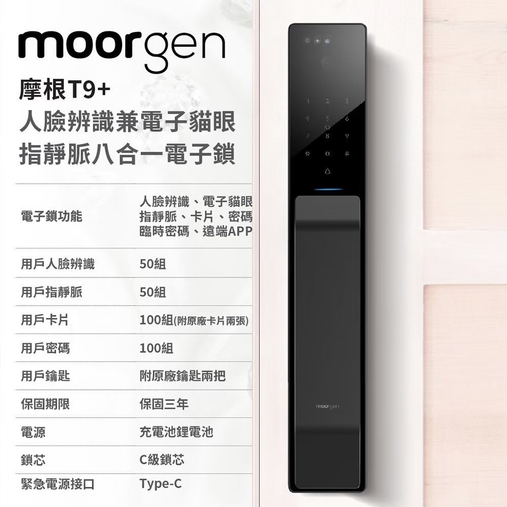 德國摩根 moorgen T9+ 十合一美型電子鎖 |