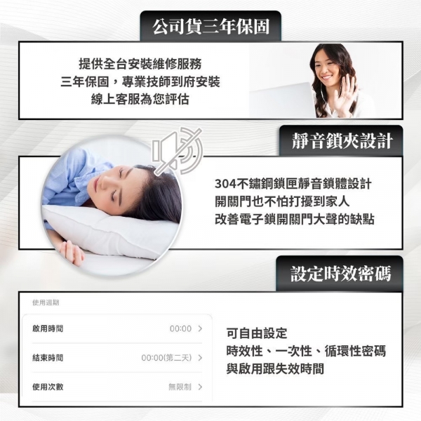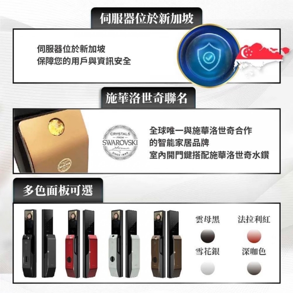 C級鎖芯、兒童鎖、辦公/私人模式、BSMI 鋰電安全認證、AWS 雲端加密、NCC:CCAJ24LPABB0T0、電子反鎖 |