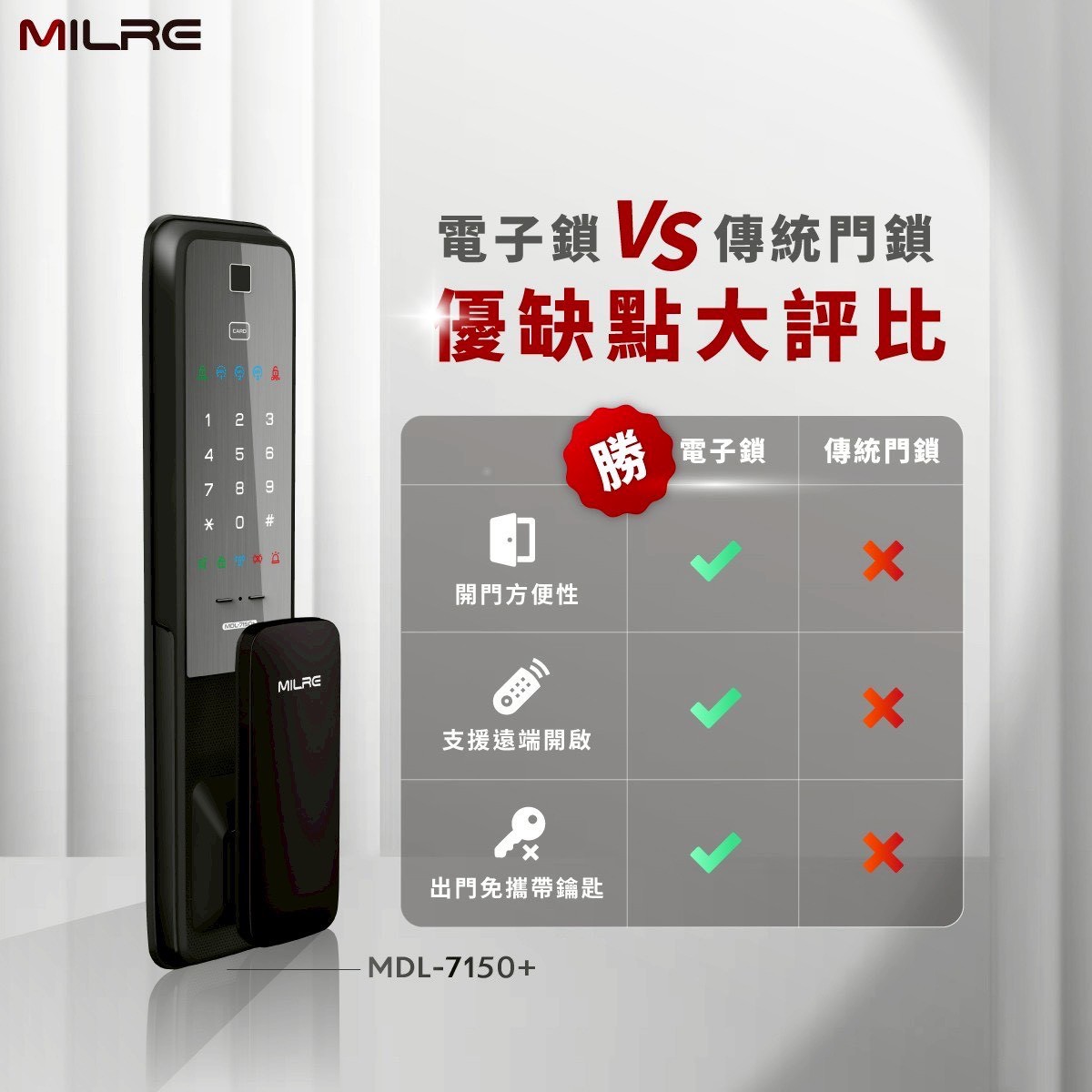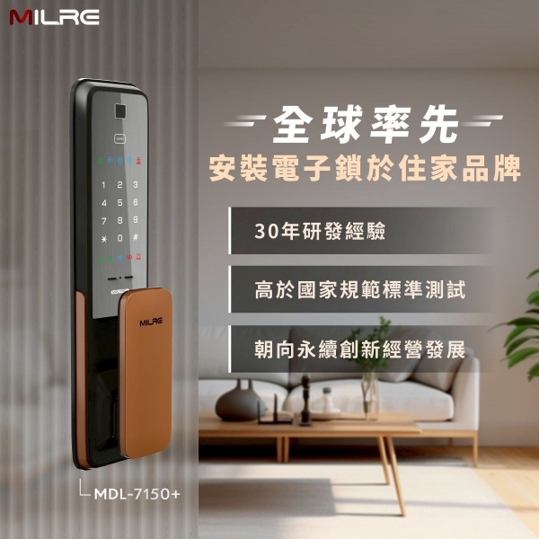Milre MDL-7150+ 美樂 四合一密碼/卡片/鑰匙/指紋 電子門鎖 (附基本安裝)